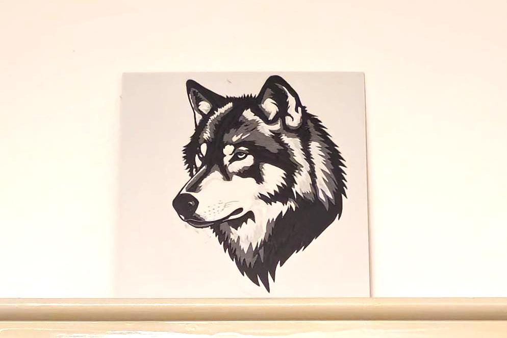 This wolf motif is produced using a special multi-layer process, giving it a three-dimensional, sculptural, and extremely lifelike appearance. Each individual layer is printed with precision, ensuring that fine details such as fur texture, eyes, and contrasting lines stand out clearly.