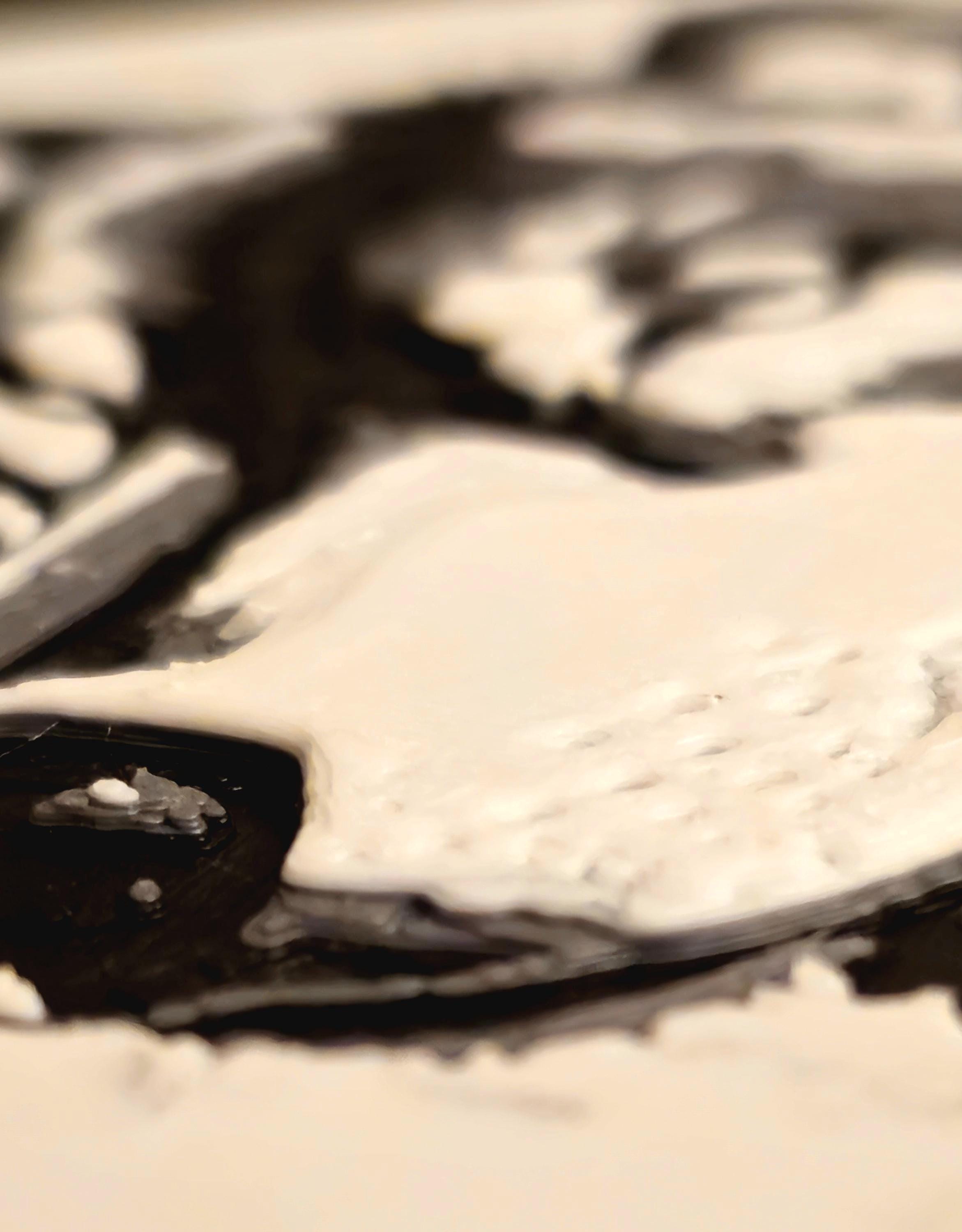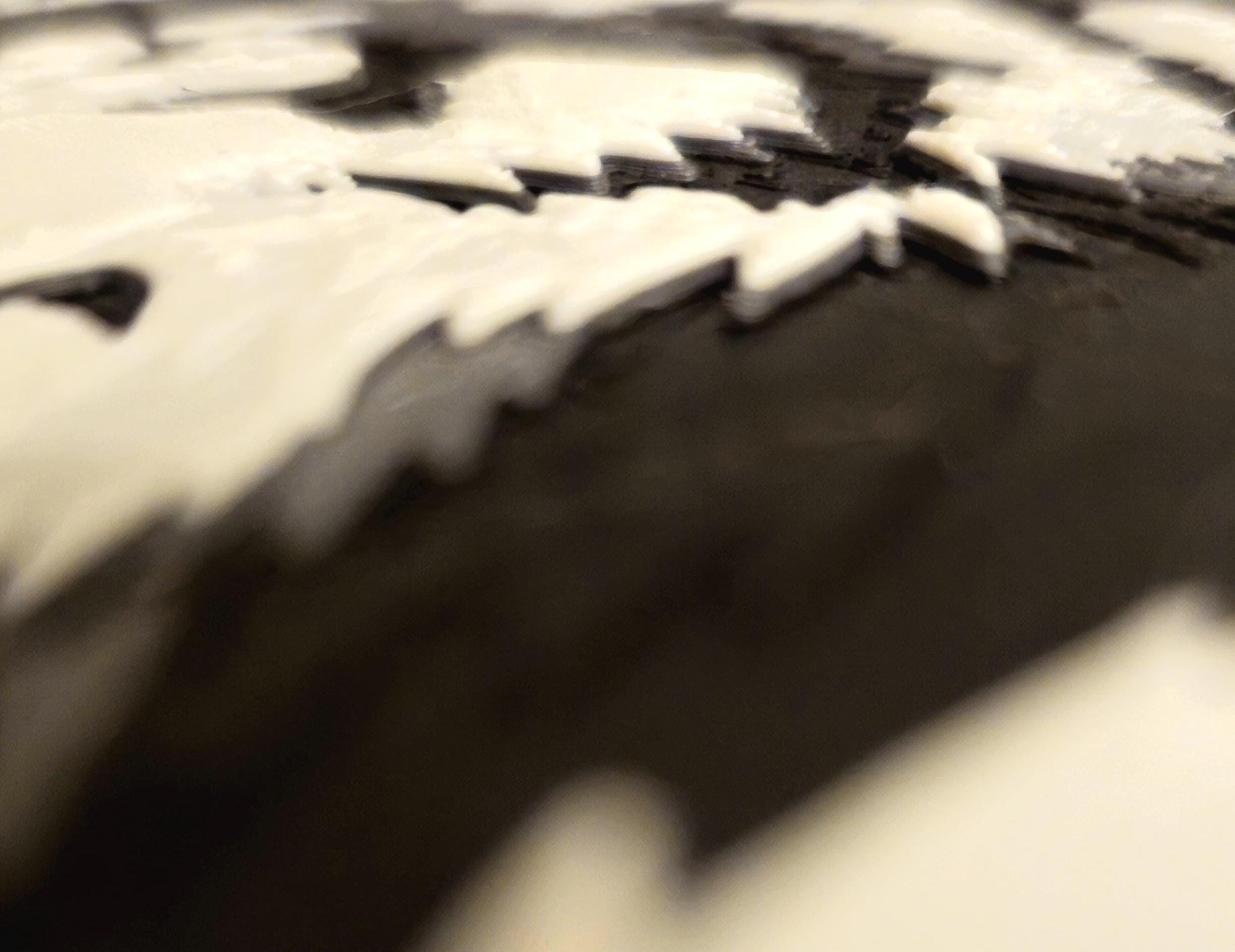 • Detailed 3D relief Hueforge with modern black and white/grey look